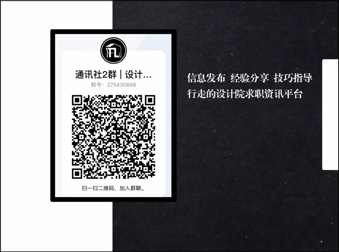 (目前设计院通讯社求职交流二群已满,扫码即可加入三群)
