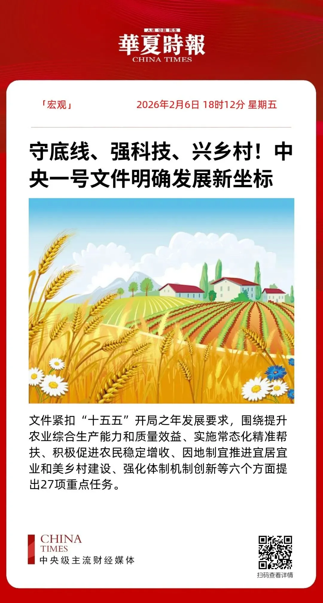 《守底线、强科技、兴乡村!中央一号文件明确发展新坐标》