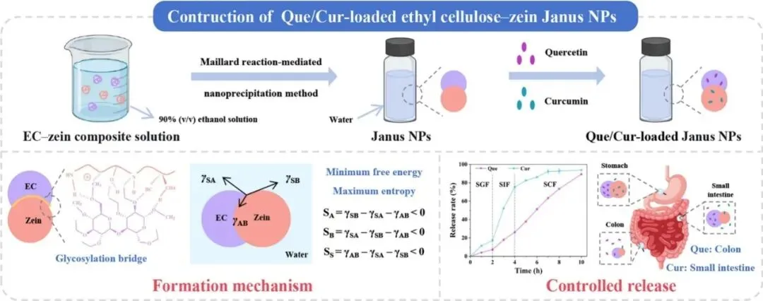 Carbohydrate Polymers| 乙基纤维素 - 玉米醇溶蛋白锁钥结构 Janus 纳米颗粒的精准组装及其对槲皮素和姜黄素的控释研究