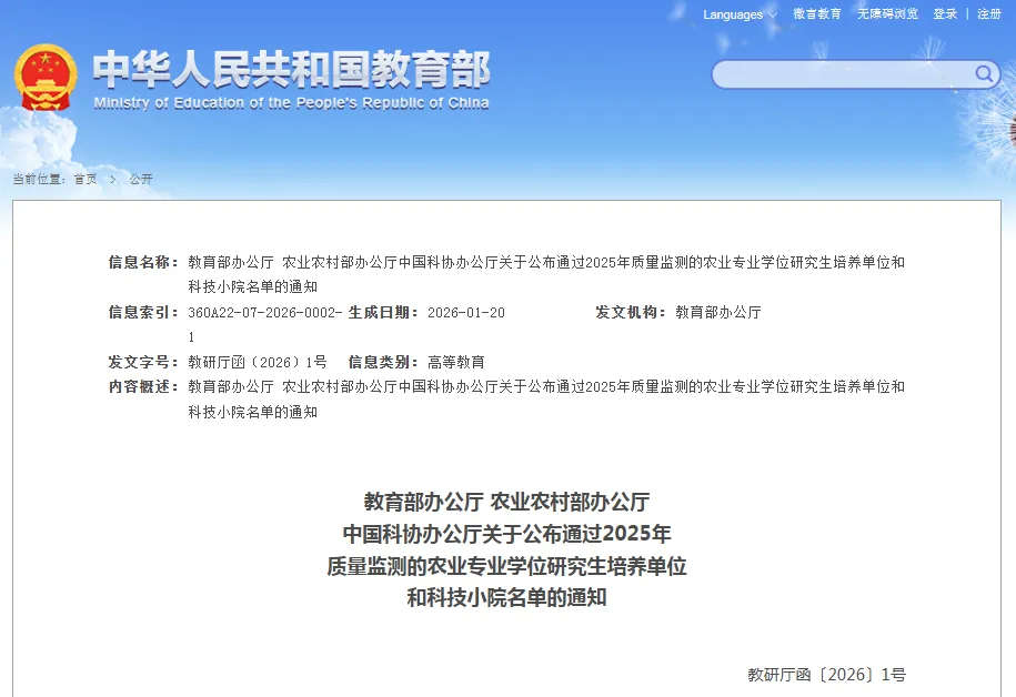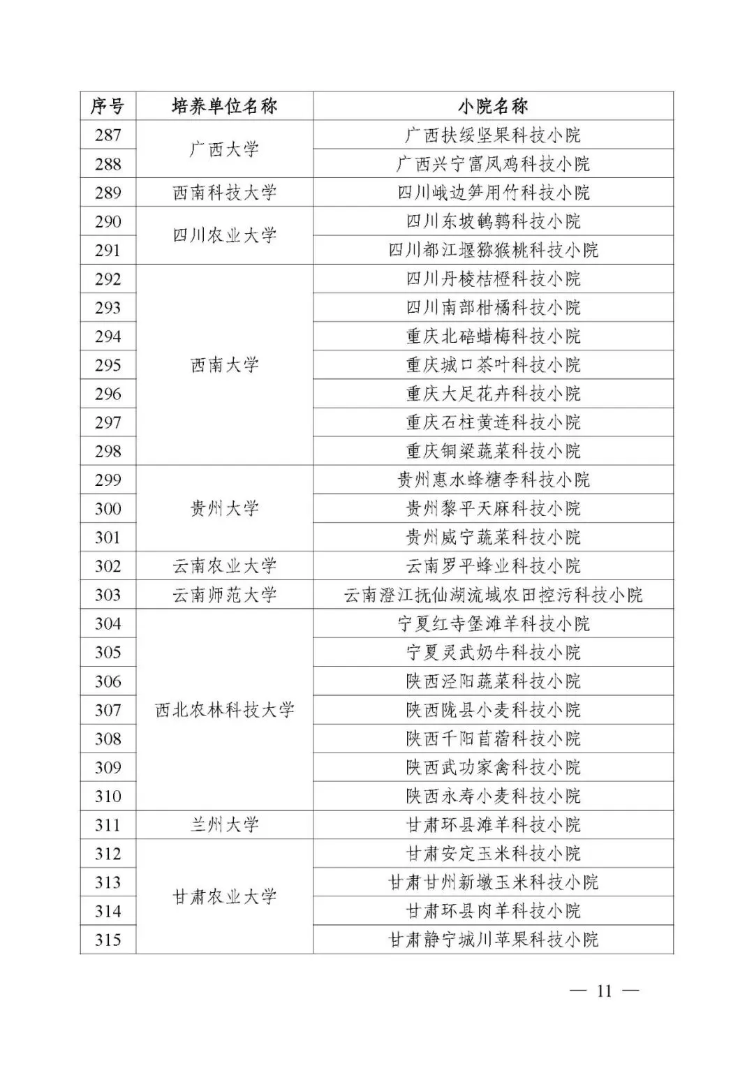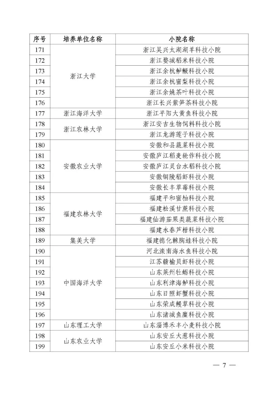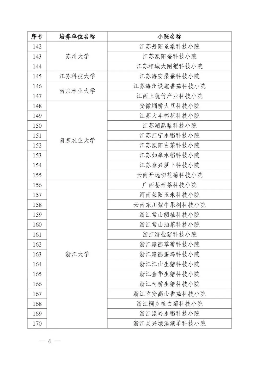 为深入贯彻习近平总书记关于研究生教育的重要指示精神和给中国农业大学科技小院同学们的重要回信精神,落实《教育强国建设规划纲要(2024—2035年)》及中央一号文件的部署要求,根据《教育部办公厅 农业农村部办公厅 中国科协办公厅关于开展科技小院农业专业学位研究生培养质量监测工作的通知》(教研厅函〔2025〕4号),规范科技小院建设,培养应用型高层次人才,经培养单位申请、专家咨询等,确定42个农业专业学位研究生培养单位、370个科技小院通过质量监测(名单见附件)。现将有关事项通知如下。