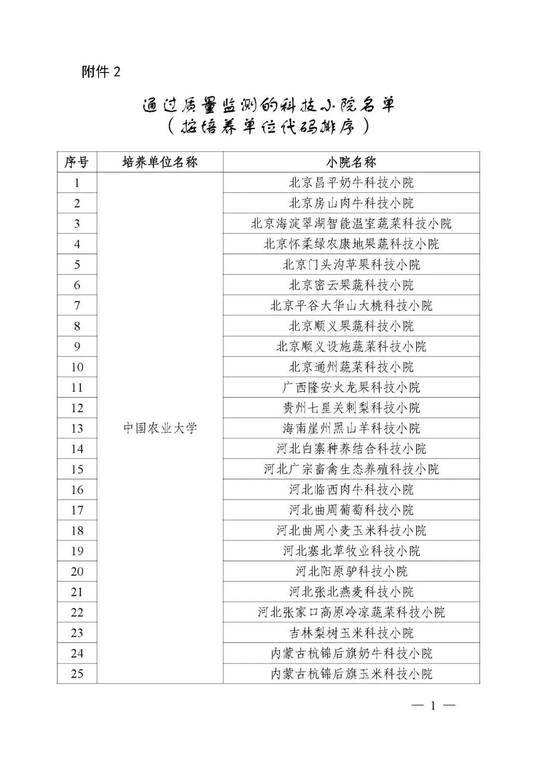 2.通过质量监测的科技小院名单(按培养单位代码排序)