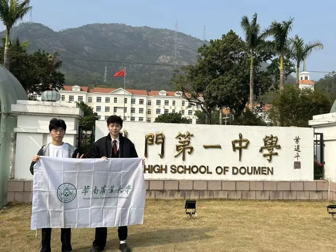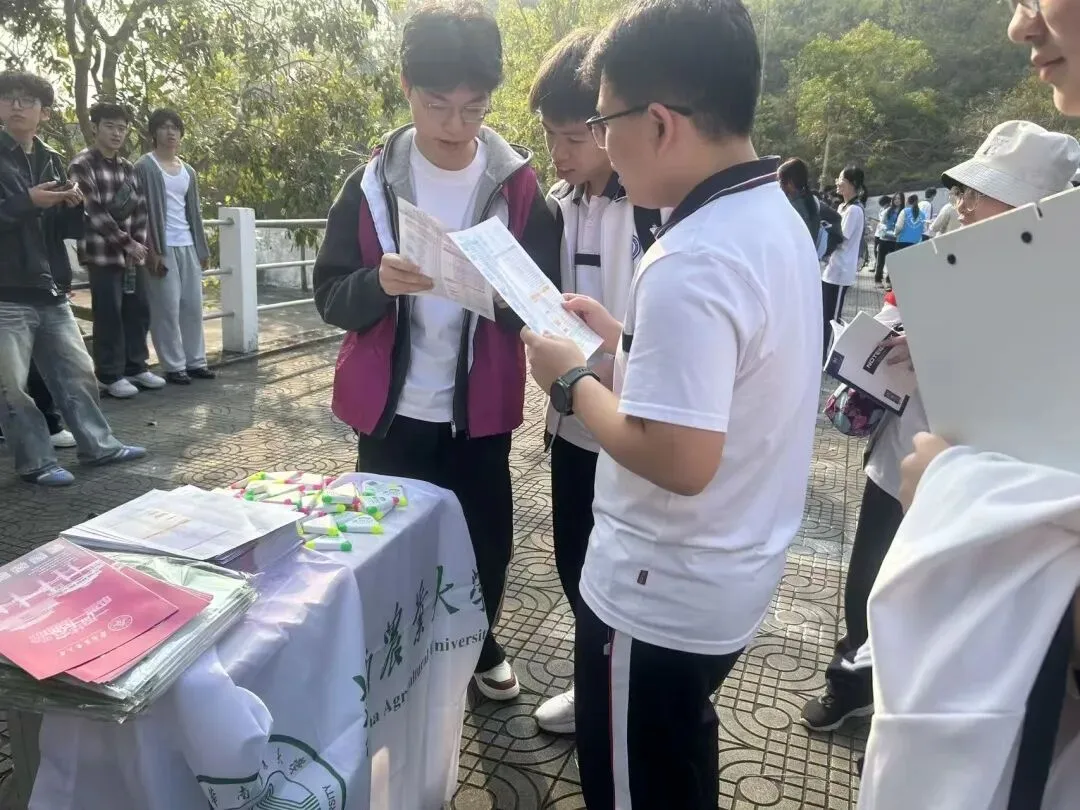 1月30日,邱林钰泓作为招生宣传大使,带领团队成员陈思琪、卿善珏回到母校珠海市实验中学开展线下寒招宣传活动。团队采用“进班宣讲”和“校园摆摊”的形式,向学弟学妹们详细介绍了华农特色。