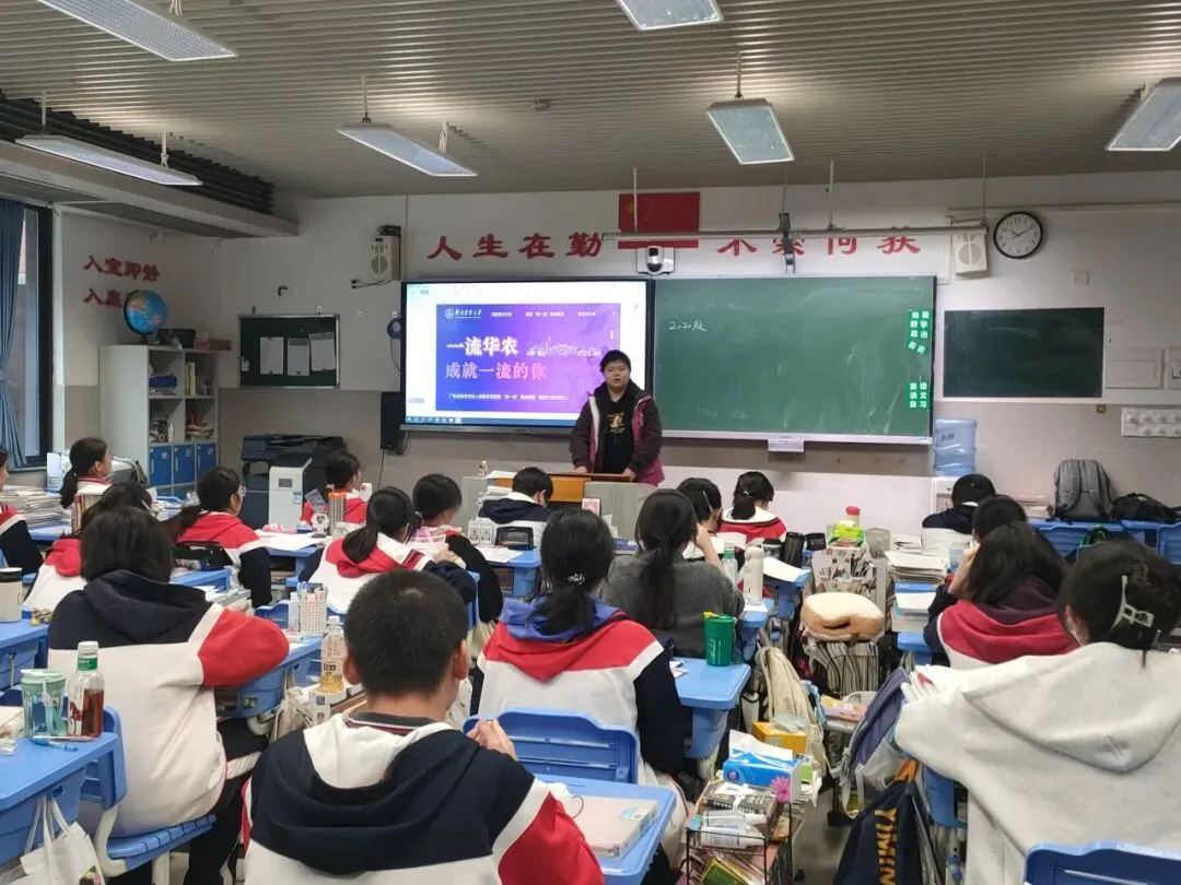 1月29日,刘怡泓作为招生宣传大使,带领团队成员王嘉映、徐嘉曦回到母校华中师范大学珠海附属中学,开展线下寒招宣传活动。团队采用“进班宣讲”的形式,从学校历史底蕴、学科优势、特色专业(如动物科学、园艺)、校园文化生活、食宿环境,到历年招生分数线、报考注意事项等方面,向学弟学妹们展开详细介绍。
