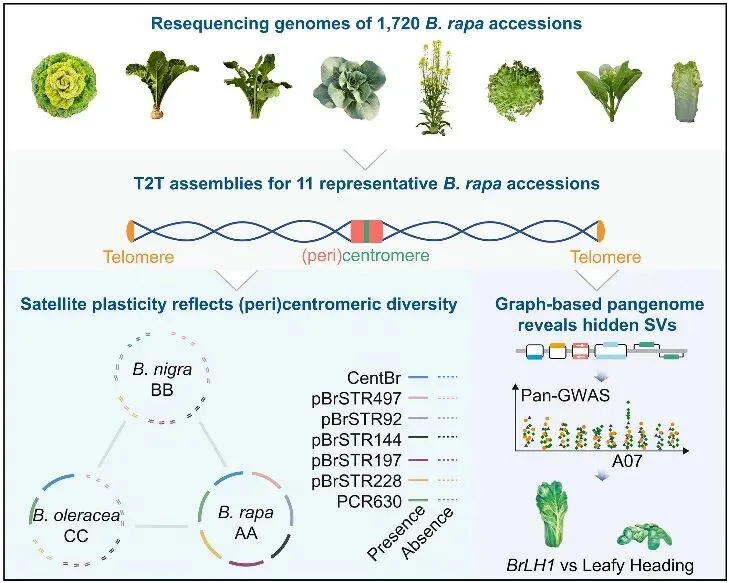 研究团队对1720份十字花科芸薹属白菜类作物进行了全基因组重测序,并选取涵盖7个亚种的11份代表性材料,完成了高质量无间隙(0gap)基因组组装。通过整合比较基因组学与结构变异分析,研究首次系统阐明了着丝粒结构重塑与大规模基因组重排共同驱动白菜类作物亚种快速形成的分子机制。该成果从基因组演化层面为回答达尔文提出的“被子植物为何能在地球上迅速崛起、并在短期内爆发式多样化”之谜提供了关键证据。