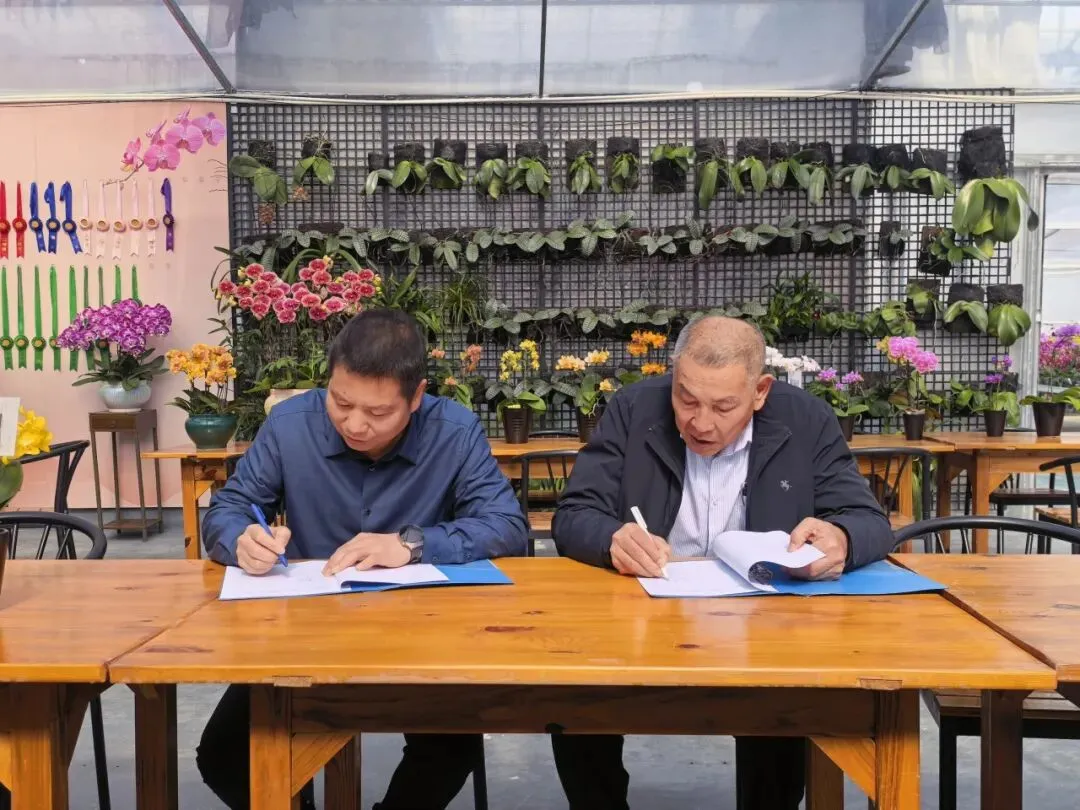 签约仪式上,我校党委黄金弟书记表示,学校始终立足“服务三农”的办学定位,将校企合作、产教融合作为提升办学质量的关键路径。此次牵手的两家台资花企,是蝴蝶兰育种、组培与规模化生产的标杆台企,不仅拥有先进的花卉生物技术与标准化生产体系,而且他们的技术强、资源多,与学校现代农业专业的人才培养方向高度契合。根据合作协议,校企双方将围绕人才培养、实训基地建设、课程开发、师资共建,四大核心领域展开全方位合作。今后,企业将为我校师生提供实习岗位、技术指导,学校为企业输送适配型技能人才,形成“招生—培养—就业”一体化育人链条。