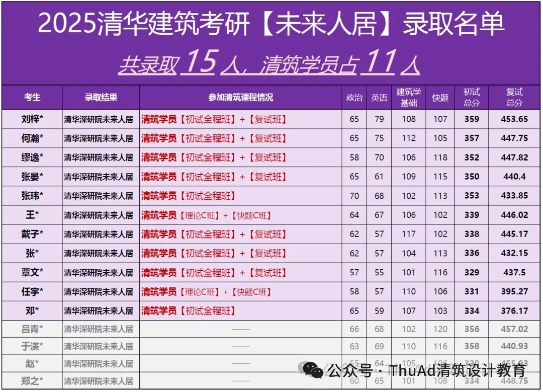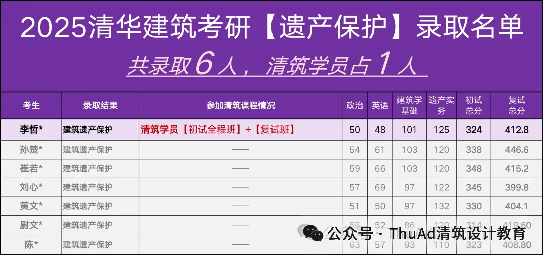 2020年共录取11人,其中清筑学员6人。
