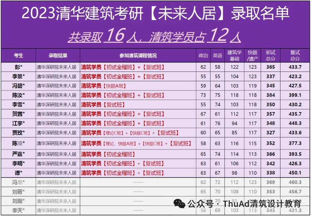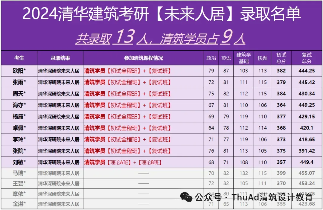 清华建筑考研战绩