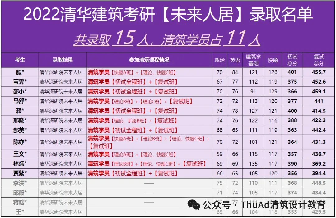 2022年共录取21人,其中清筑学员14人。