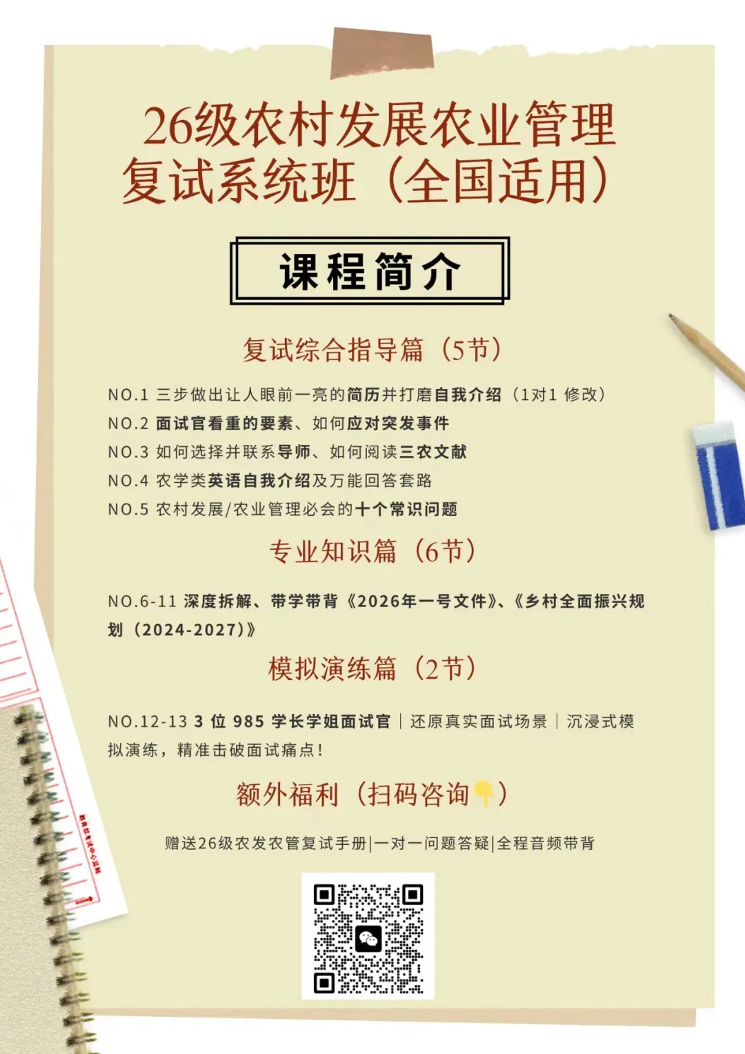 跨考的同学可以提一下跨考原因,本专业和农村发展/农业管理之间有何内在联系)。