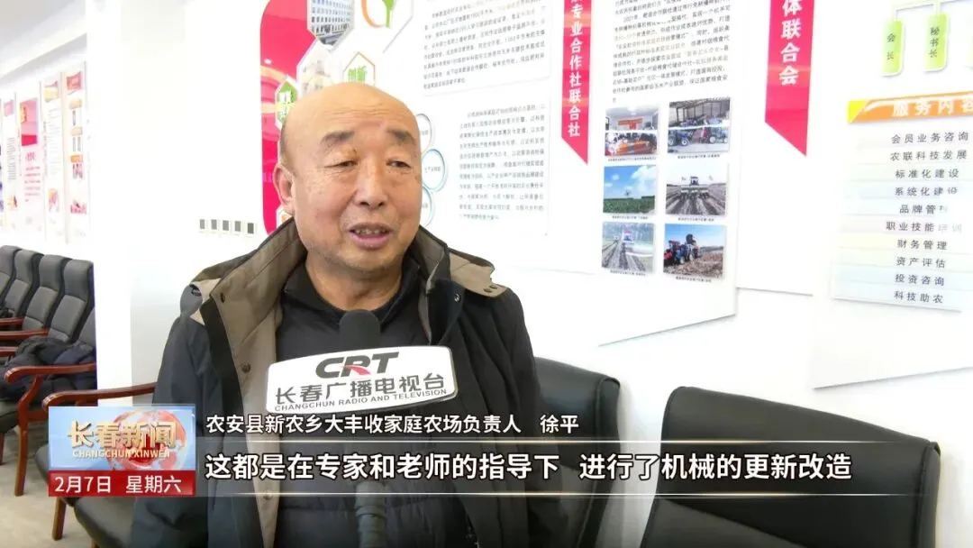 农安县新农乡大丰收家庭农场负责人 徐平:保护性耕作、(苗期)深松,秋收的时候,减少破损率……这都是在专家和老师的指导下,进行了机械的更新改造,降低了(粮食)损失率,(家庭农场)从经营几十亩地到现在经营上万亩地,收入也提高了,(合作社)百姓也跟着受益。