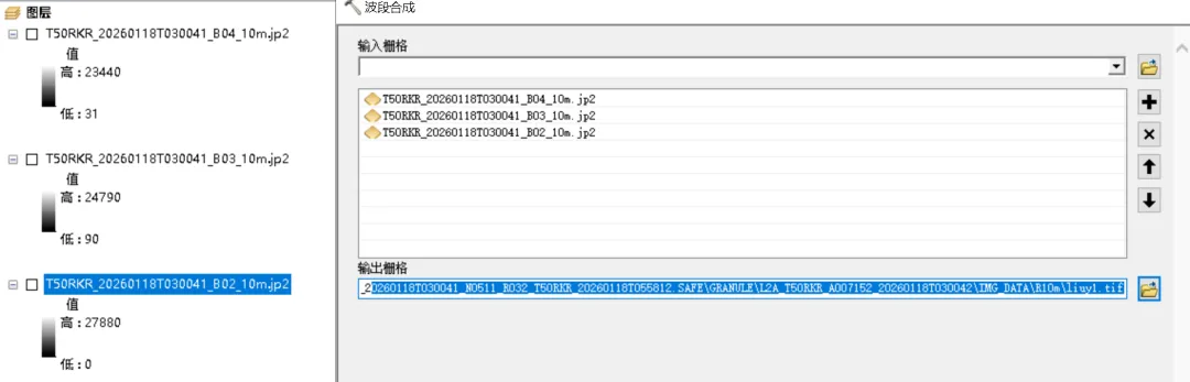 此前我们在公众号文章土壤三普专题|环境变量之哨兵2号数据下载三大方法中,详细介绍了哨兵数据,并编写了批量下载程序。近期我们也修复了程序中遗留的一个关键 bug—— 核心原因是查询的矢量数据节点不宜过多,建议优先提取矢量外接矩形来优化查询效率。以浏阳市行政区划为例,我们通过 ArcGIS 的外接矩形工具获取矢量边框后重新测试,仅用极短时间就成功下载了 2 景哨兵数据!这样的优化方案,对于省市级土壤三普、农业四普工作来说,实用性和效率都大幅提升。这里补充一个基础操作:下载的哨兵数据解压后,找到 IMG_DATA 文件夹,其中包含不同分辨率、不同波段的哨兵 2 号数据。我们可选择 10 米分辨率的 B4|B3|B2 波段组合,合成真彩色影像;同理,也可通过 B8|B4|B3 组合合成标准假彩色影像(操作逻辑一致,不再赘述),如下图:如果你正投身土壤三普、农业四普相关工作,日常被各类技术难题困扰,或是想交流实操经验、分享干货技巧,欢迎加入我们的专属交流群!群内小伙伴互帮互助,助力大家高效推进各项工作落地~