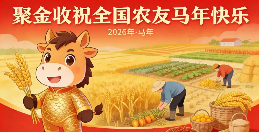 金蛇起舞辞旧岁,骏马奔腾迎新春。当新年的钟声即将敲响,当喜庆的春联贴满家门,聚金收全体家人怀着无比感恩的心情,向每一位坚守在农业一线的你,致以最诚挚的新年问候和最美好的祝福!