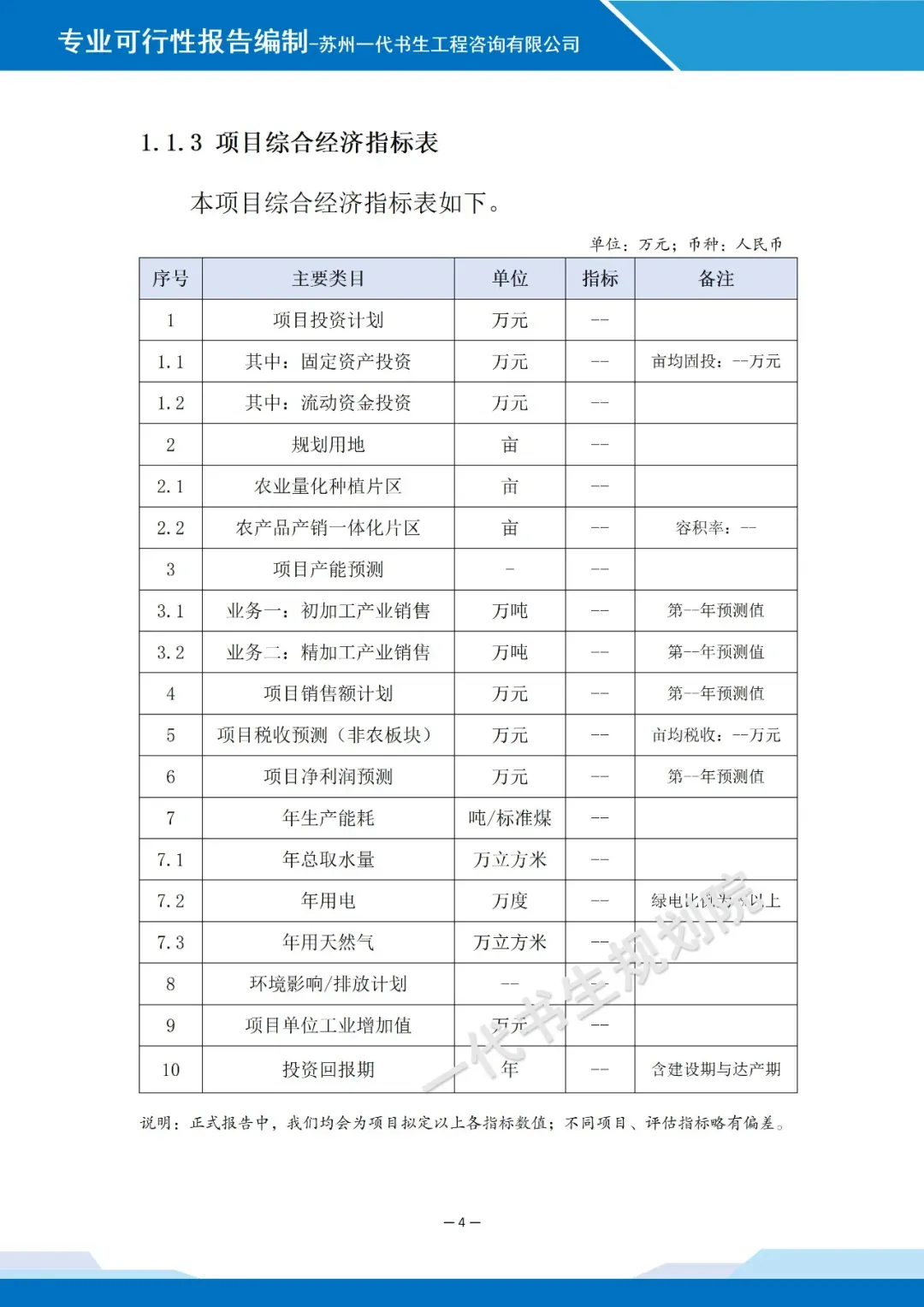 以下为可研报告的概要