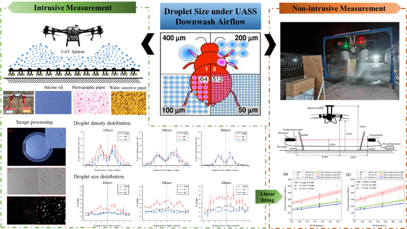 植保无人飞机(UASS)已成为现代农业病虫害防治的重要装备,但喷雾雾滴粒径分布直接决定药液沉积效率与环境飘移风险,是精准施药调控的核心参数。传统的水敏纸与相纸等固体采集方法易受雾滴铺展与重叠影响,在高密度沉积条件下测量误差显著;而激光粒度仪虽精确,却难以在无人机下洗气流与田间大范围作业环境中应用。因此,建立一种兼具准确性与田间可操作性的雾滴测量技术成为无人机施药领域的关键问题。