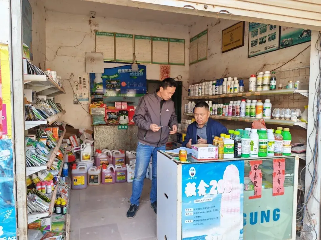 2月5日,县植保站到勐伴镇、瑶区乡开展农药生产、销售、使用全环节专项排查。