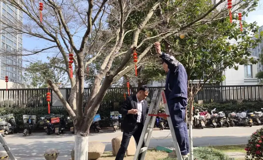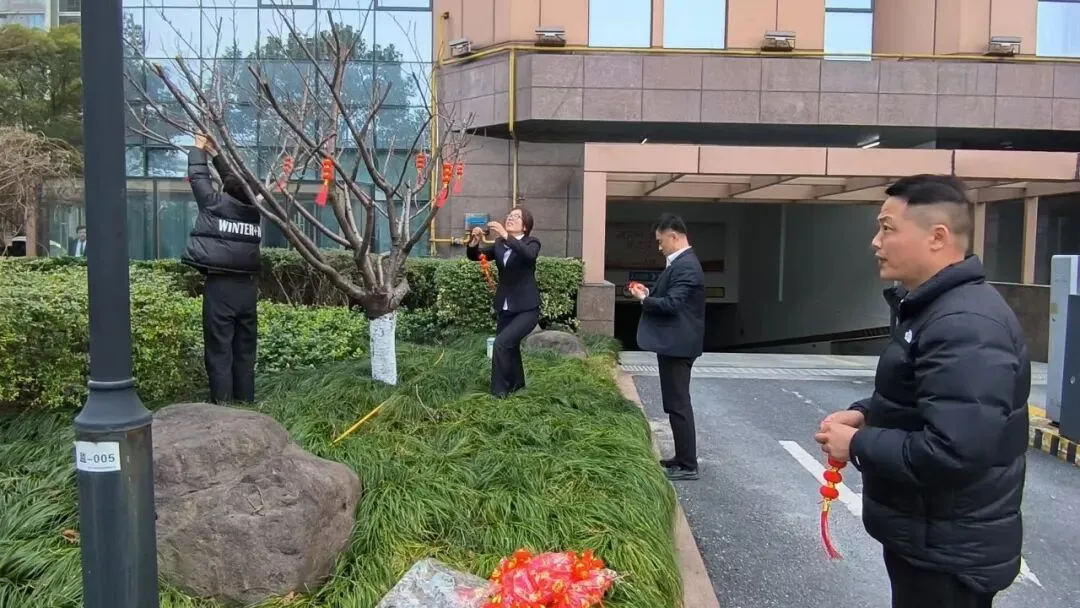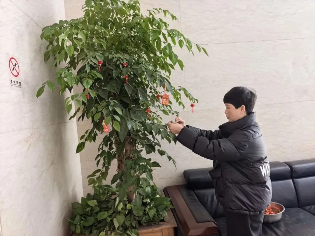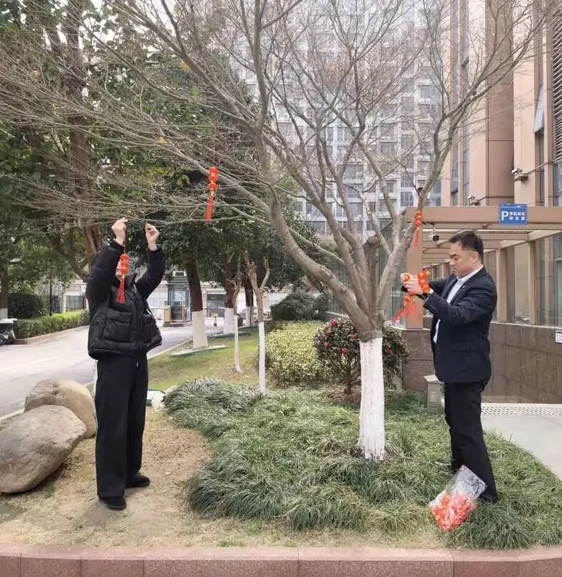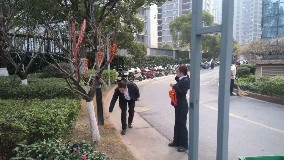 物业服务中心提前组织工作人员在大厦入口处及主干道上悬挂灯笼、安装彩灯,处处洋溢着浓浓的年味,营造“优美亮丽”的春节氛围。