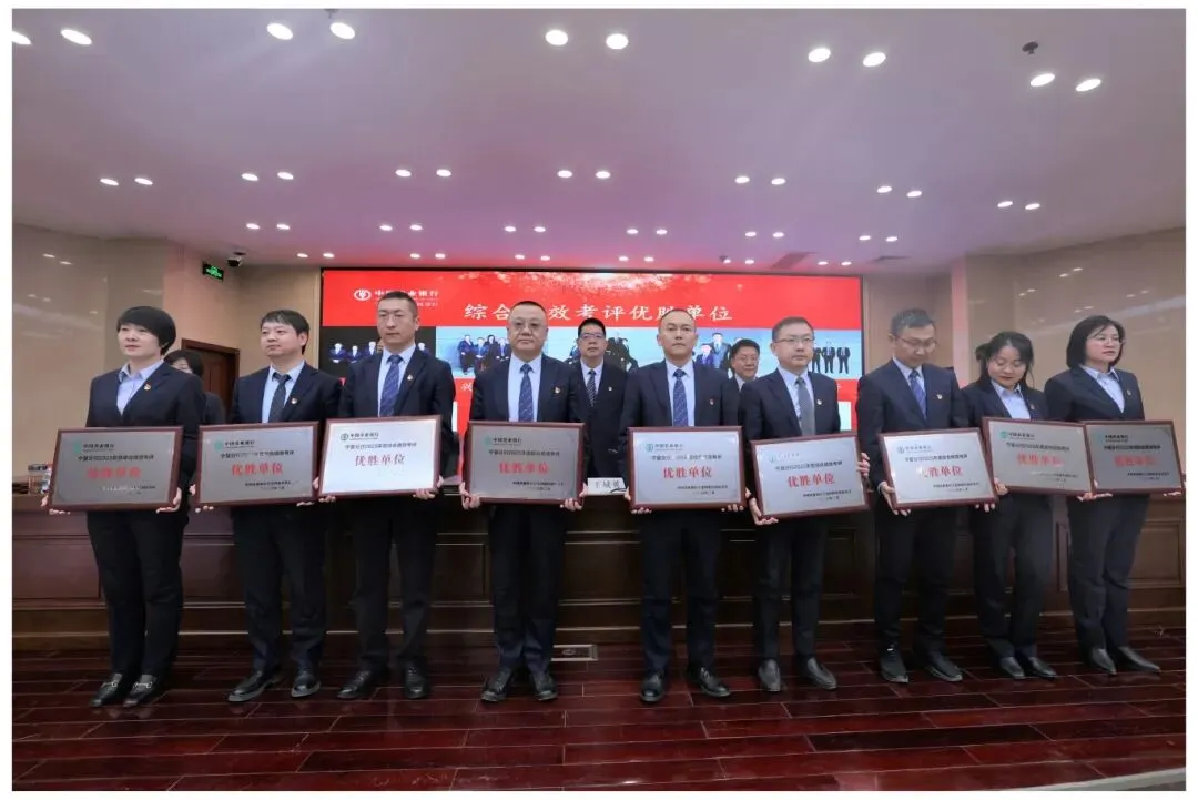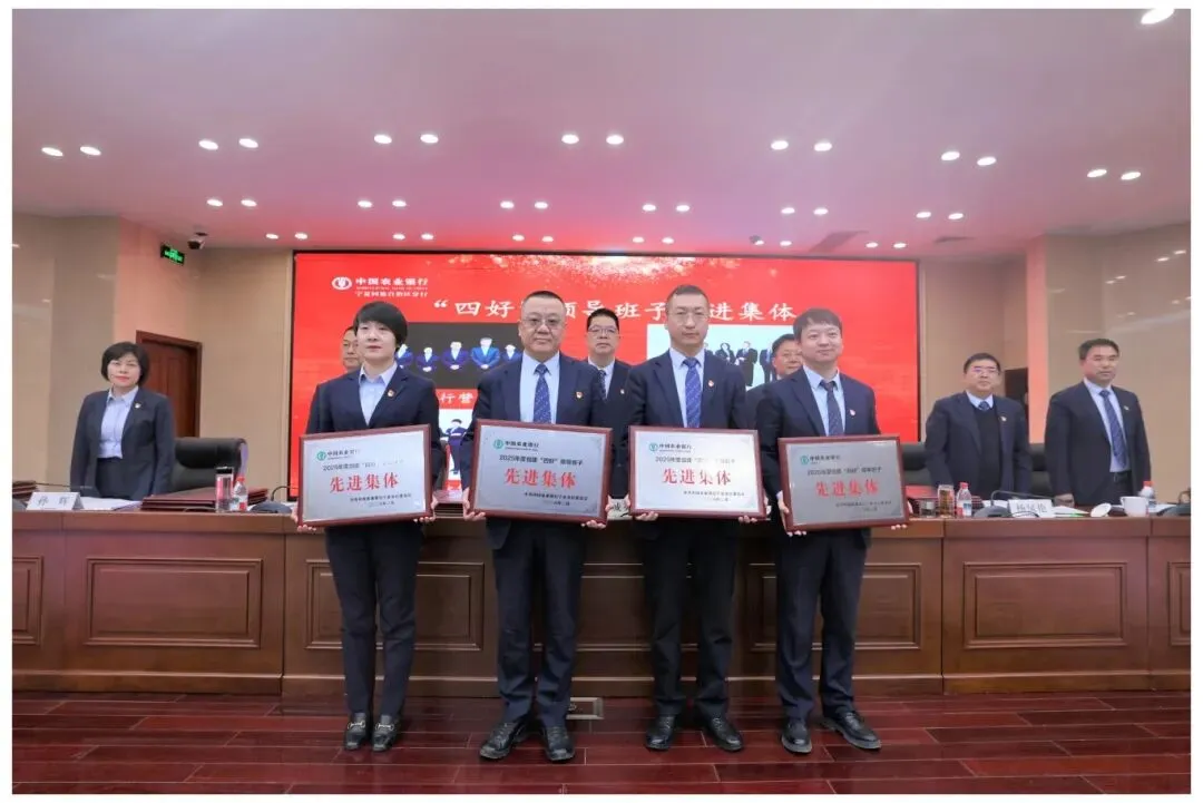 会上,分行财务会计部、个人金融部分别对综合绩效考核、网点竞争力监测进行分析;分行营业部、灵武支行、西吉支行、金凤支行分别围绕对公、零售、三农、普惠板块作经验交流;对2025年度创建“四好”领导班子先进集体、综合绩效考核优胜单位、服务乡村振兴领军示范行、普惠金融业务先进单位、安全保卫先进单位等进行了表彰。