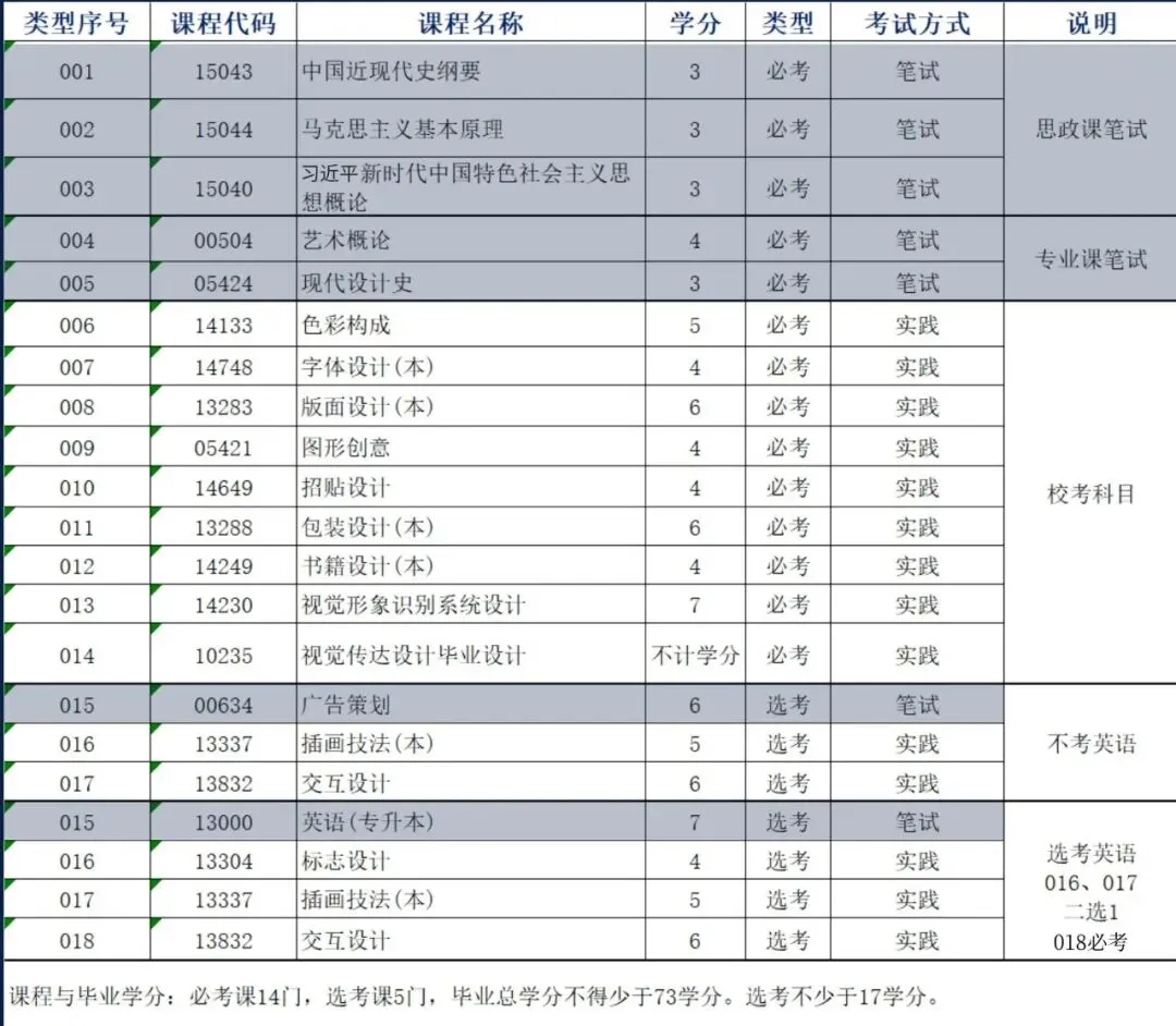 笔试统考科目:马克思主义、近现代史纲要、习近平新时代、艺术概论、现代设计史、广告策划/英语(专升本),英语非必考科目