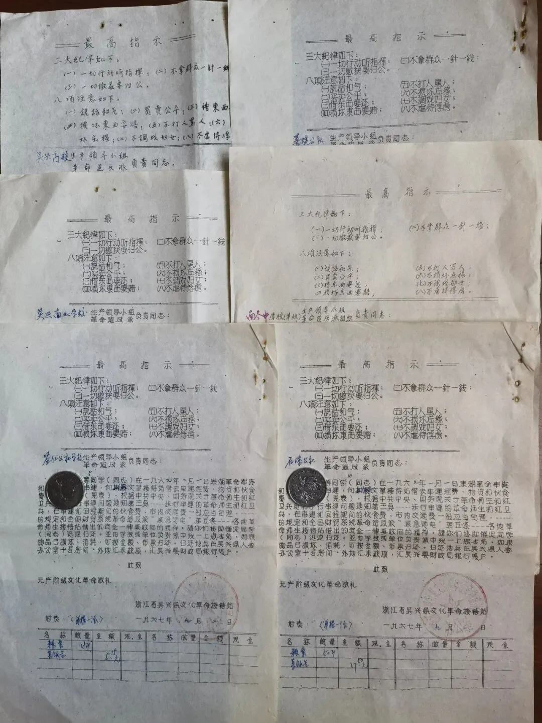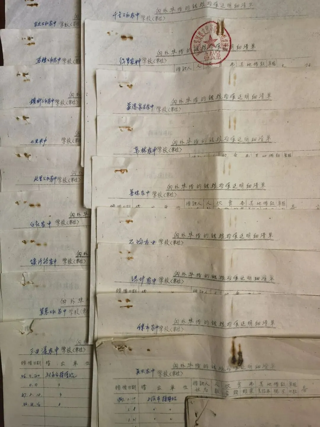 笔者约于一月前在地摊淘得一批旧纸,所记内容都为记录文革时期外出串连人员借用钱粮事等,人员有教育系统也有其他部门,教育系统则有教师也有学生,有城内学校也有城外学校,有中专学校也有中小学校,其中有一部分是关于农业中学学生外出串连的。