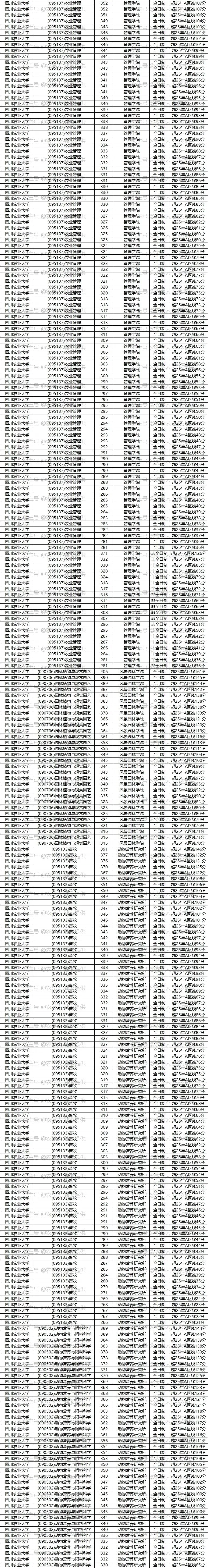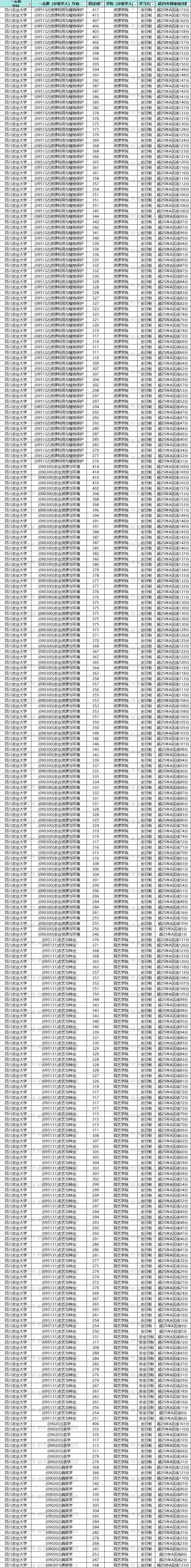 比如安徽农业大学(095131)农艺与种业,(090403)农药学,(090101)作物栽培学与耕作学,(090102)作物遗传育种,(090201)果树学,(090202)蔬菜学,(090401)植物病理学,(090402)农业昆虫与害虫防治,(090501)动物遗传育种与繁殖,(090502)动物营养与饲料科学,(090504)特种经济动物饲养,(090701)林木遗传育种,(090702)森林培育,(090703)森林保护学,(090704)森林经理学,(090706)园林植物与观赏园艺,(090800)水产,(095132)资源利用与植物保护,(095133)畜牧,(095134)渔业发展等专业,23年—25年每一年都招了调剂,那么有90%以上的可能它今年还是会招调剂,那这样的学校就是我们的重点关注对象。