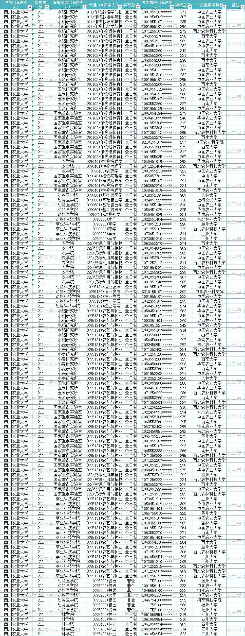 我们整理的农学考研核心数据,包含: