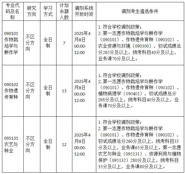 根据四川农业大学《2025年招收攻读硕士学位研究生复试、调剂、录取工作办法》(校研发〔2025〕10 号),现将水稻研究所2025年硕士研究生招生调剂工作安排如下: