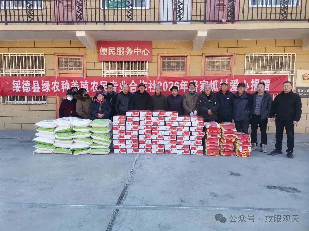 新春佳节将至,为弘扬敬老爱老、扶危济困的传统美德,营造欢乐祥和的节日氛围,绥德县绿农种养殖农民专业合作社于2026年2月8日组织开展了“迎新春·送温暖”系列关爱活动,为辖区22个特困和高龄家庭爱心捐赠米、面和苹果;同时邀请理发师为全村居家村民免费理发。