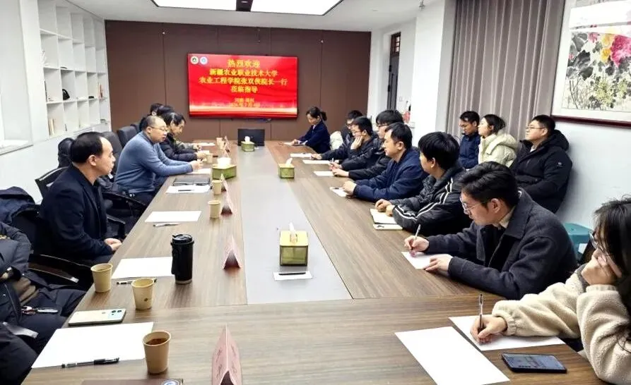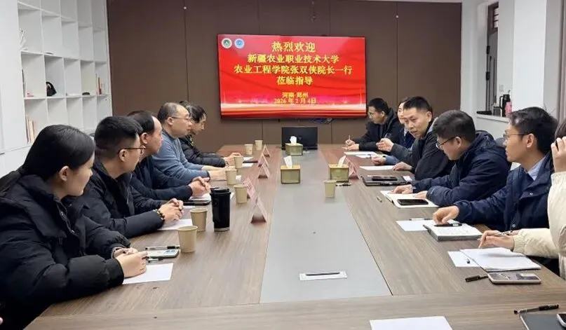 2026年2月4日,新疆农业职业技术大学农业工程学院院长张双侠一行来院调研交流。学院党委书记贾云飞会见张双侠一行。副院长王振锋出席座谈会。农业机械系和能源工程系部分教师参加会议。