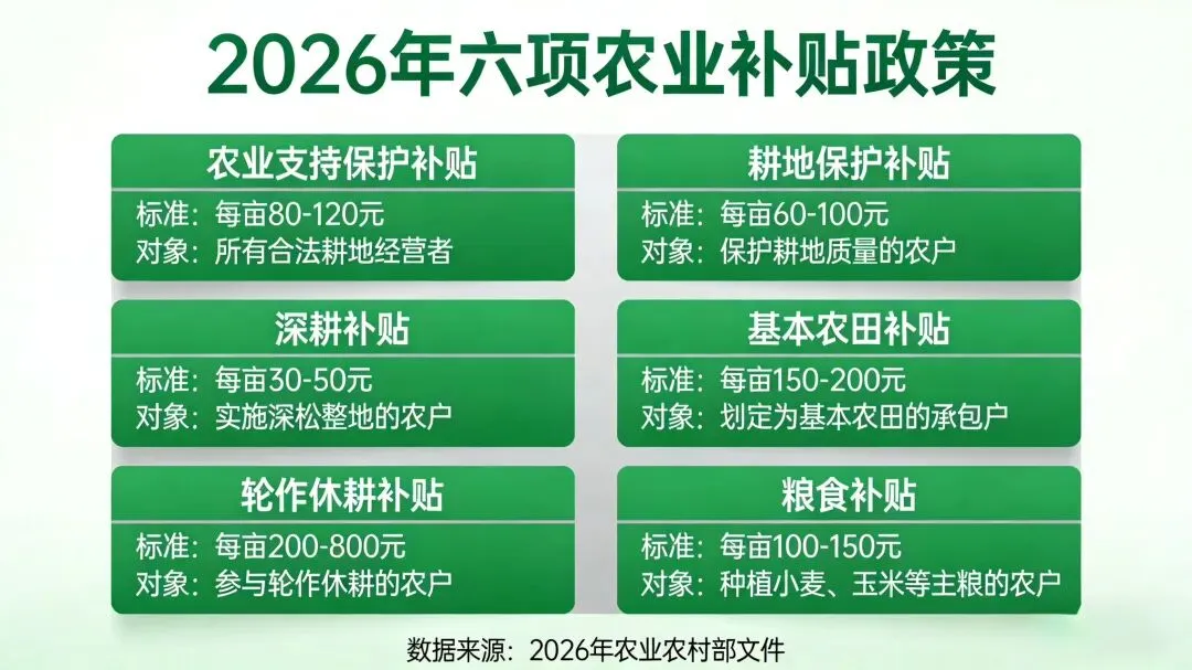 2026年六项农业补贴,是国家稳粮增收、护地兴农的重要举措,小农户积少成多,种粮大户收益更实。