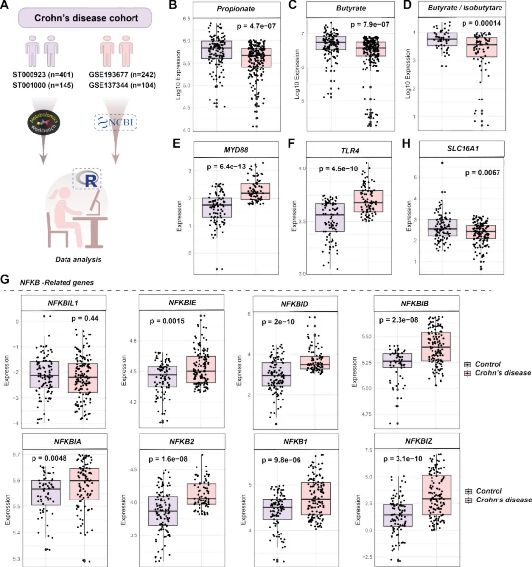 (5)克罗恩病患者存在 SCFAs 下调及 MyD88-NF-κB 通路激活,具有临床相关性