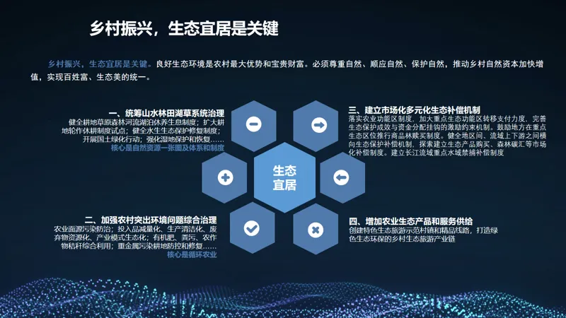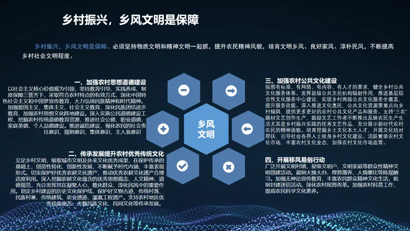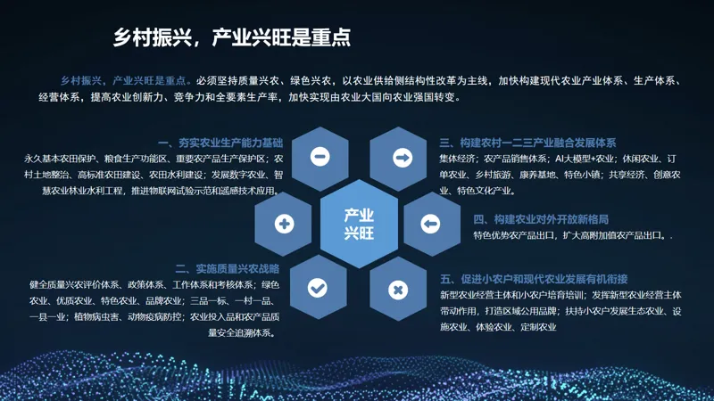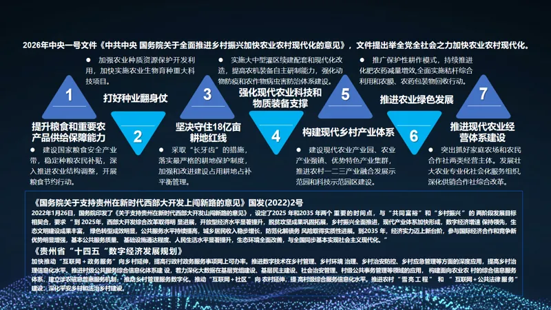 文件围绕乡村全面振兴,明确六大重点任务,形成 “守底线、促增收、优环境、强机制、固保障” 的政策体系: