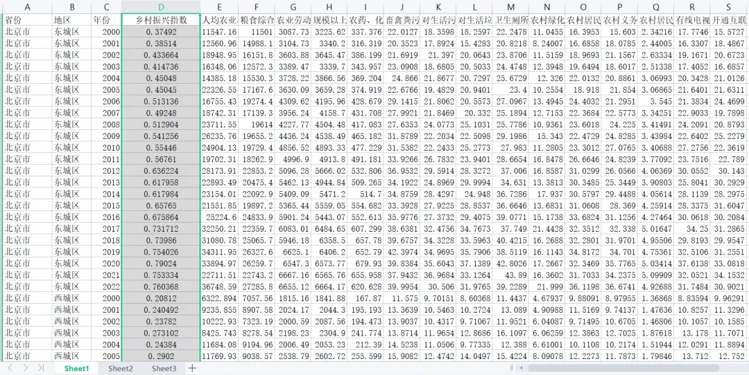一、2000-2022年中国各地级市乡村振兴测算数据