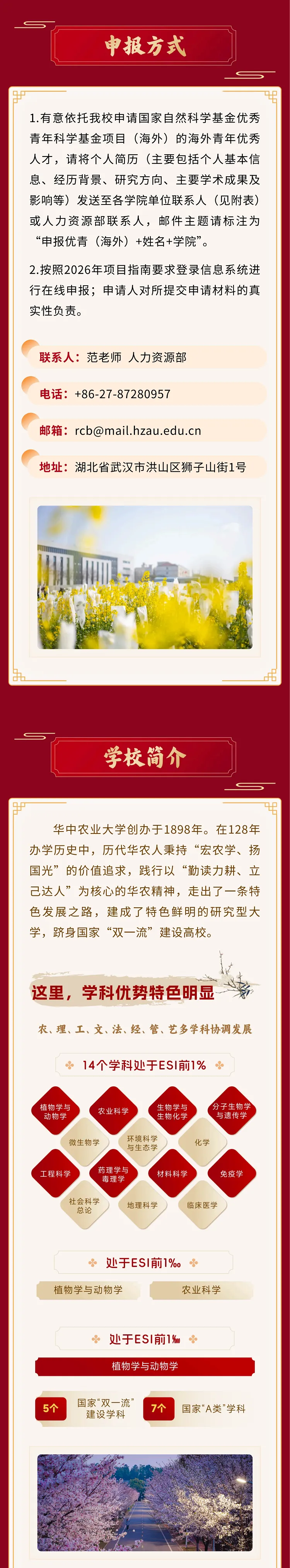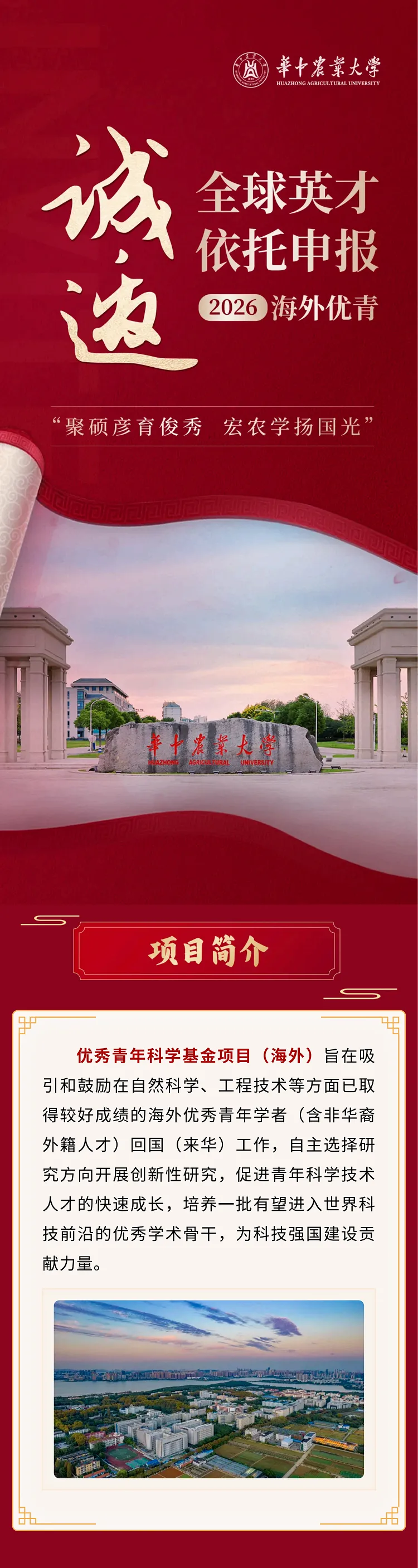 >华中农业大学诚邀全球英才依托申报2026年海外优青