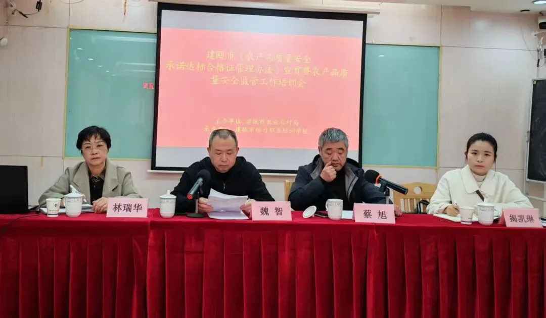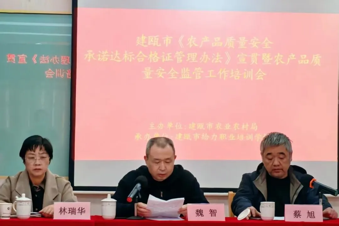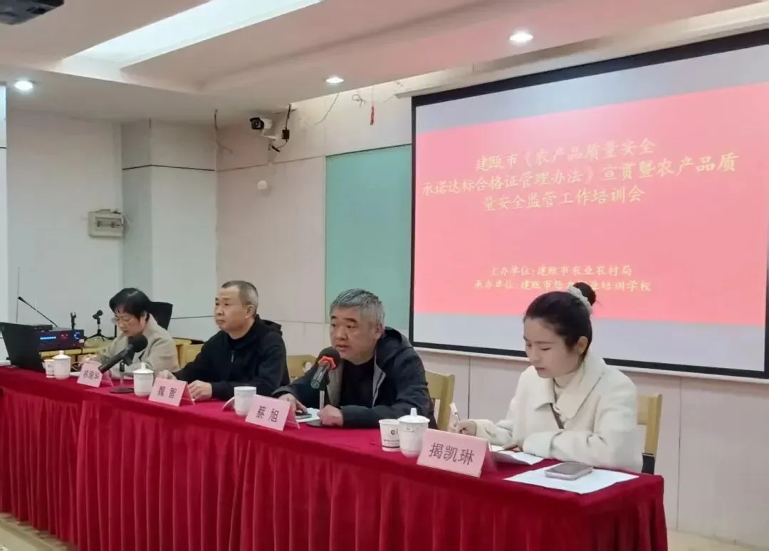 为深入贯彻《中华人民共和国农产品质量安全法》,全面落实《农产品质量安全承诺达标合格证管理办法》,进一步提升全市农产品质量安全监管效能,推动 2026 年监管工作落地见效,2 月 6 日建瓯市农业农村局在建瓯市给力职业培训学校举办《农产品质量安全承诺达标合格证管理办法》宣贯暨农产品质量安全监管工作培训会。