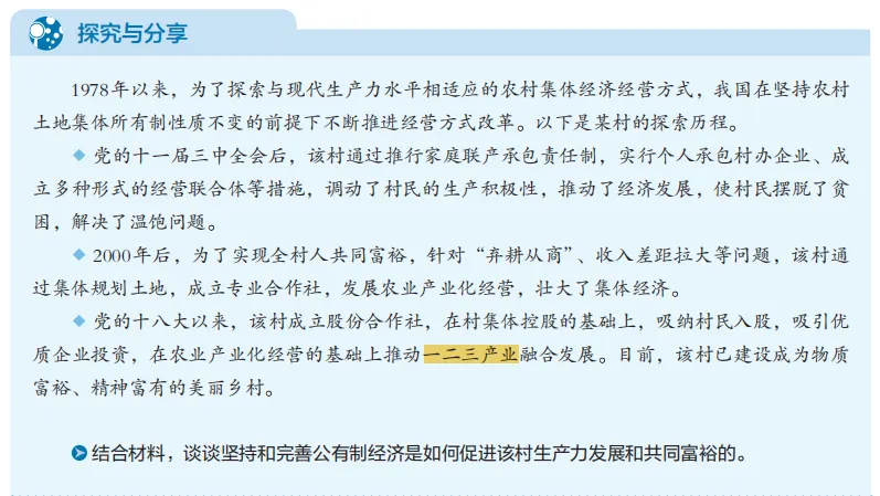 2026 年中央一号文件以《中共中央 国务院关于锚定农业农村现代化 扎实推进乡村全面振兴的意见》为主题,围绕六大板块部署 “十五五” 开局之年 “三农” 工作,包括:提升农业综合生产能力和质量效益、实施常态化精准帮扶、积极促进农民稳定增收、因地制宜推进宜居宜业和美乡村建设、强化体制机制创新、加强党对“三农”工作的全面领导。如果从备考的角度看,要注意“农业现代化、农民增收、乡村治理”三大主线。三大主线与高中政治新教材必修、选择性必修模块高度契合,高考命题多以时政情境为载体,考查教材核心知识点的应用能力,以下分主线、分模块拆解对接要点,明确备考重点:1. 必修2《经济与社会》:核心对接生产资料所有制、经济高质量发展、乡村振兴战略等知识点。重点关注农村土地“三权分置”、集体经营性建设用地入市等制度创新,理解其对壮大农村集体经济、优化土地资源配置的意义;结合农业新质生产力,分析科技创新对推动农业供给侧结构性改革、实现农业高质量发展的作用,掌握乡村振兴战略的内涵与实施路径。备考中,主观题常考查“如何通过科技与制度创新提升农业综合生产能力”,选择题侧重考查耕地保护、种业振兴的经济意义,需强化知识点与政策举措的关联记忆。2. 必修4《哲学与文化》:核心对接规律客观性与主观能动性的辩证统一、联系观、创新意识等知识点。农业科技的应用(如AI、无人机赋能农业),体现了人类尊重客观规律、充分发挥主观能动性的道理;耕地保护、科技应用、粮食产量之间的内在关联,契合联系的普遍性、客观性原理;农业新质生产力的发展的本质是创新,体现了辩证否定观和创新意识的要求。备考中,主观题可能要求用联系观解读“良田良种良机良法”集成增效的逻辑,选择题常结合农业防灾减灾考查主观能动性的发挥。3. 选必1《当代国际政治与经济》:核心对接国家安全、经济全球化等知识点。粮食安全是国家安全的重要基础,结合全球粮价波动、国际粮食市场变化,分析我国如何统筹粮食安全与对外开放,坚持独立自主的和平发展道路,培育具有国际竞争力的农业企业,推动农产品进口多元化,筑牢国家粮食安全防线。备考中,主观题侧重考查“如何统筹发展与安全,保障粮食安全”,需强化时政情境与教材知识点的结合能力。4. 选必3《逻辑与思维》:核心对接创新思维、辩证思维等知识点。农业新质生产力的发展,是对传统农业生产模式的突破,体现了创新思维的整体性、跨越性、独特性;在耕地保护与农业产业发展中寻求平衡,体现了辩证思维的对立统一规律,要求我们用全面、联系、发展的眼光看待乡村发展问题。备考中,主观题可能要求用创新思维的特征分析农业科技应用的价值,提升思维应用能力。1. 必修2《经济与社会》:核心对接收入分配制度、社会保障体系、共同富裕等知识点。农民“四渠道”收入的拓宽,契合我国按劳分配为主体、多种分配方式并存的分配制度,其中集体资产分红属于按要素分配,体现了对农民财产权益的保护;农业补贴、农村社会保障体系的完善,是再分配注重公平的体现,有利于缩小收入差距、实现共同富裕。备考中,主观题常考查“如何通过分配制度改革促进农民增收”,选择题侧重考查集体资产分红的分配方式、社会保障的作用,需明确各类收入的区别与政策导向。2. 必修3《政治与法治》:核心对接政府职能、以人民为中心的发展思想等知识点。政府出台农业补贴、就业扶持、社会保障等政策,推动农民增收,体现了政府履行经济建设职能(扶持农业产业发展)、社会建设职能(完善农村公共服务与社会保障),彰显了中国共产党以人民为中心的发展思想,坚持立党为公、执政为民。备考中,主观题可能要求说明政府在农民增收中的角色与作用,明确政府职能与党的执政理念的对接。3. 选必2《法律与生活》:核心对接物权保护、合同规范等知识点。农村土地流转、集体经营性建设用地使用权流转,涉及土地物权的保护与流转规则,需规范流转合同,明确双方权利与义务,防范流转纠纷;国家完善相关法律法规,打击侵害农民土地权益、拖欠农民工工资等行为,保障农民合法权益。备考中,案例分析题可能以“宅基地流转纠纷”“土地流转合同违约”为情境,考查物权保护与合同履行的相关知识,需强化法律知识点的应用能力。1. 必修3《政治与法治》:核心对接党的领导、基层群众自治等知识点。基层党组织在乡村治理中的引领作用,体现了中国共产党的领导是中国特色社会主义最本质的特征,是乡村治理的根本保证;村民自治作为基层群众自治的重要形式,通过村民会议、村民代表会议等形式,保障村民参与乡村治理的权利,“三治融合”的治理体系,提升了乡村治理效能。备考中,主观题常考查“如何在党建引领下完善乡村治理体系”,选择题侧重考查积分制、清单制的治理效能,明确基层党组织与基层群众自治组织的职责划分。2. 必修4《哲学与文化》:核心对接实践与认识的辩证关系、文化传承与发展等知识点。“千万工程”经验源于实践,又在推广过程中不断完善,体现了实践是认识的来源、动力和目的;乡村治理中弘扬农耕文明、推进移风易俗,体现了文化传承与创新的要求,有利于培育和践行社会主义核心价值观,丰富乡村文化内涵。备考中