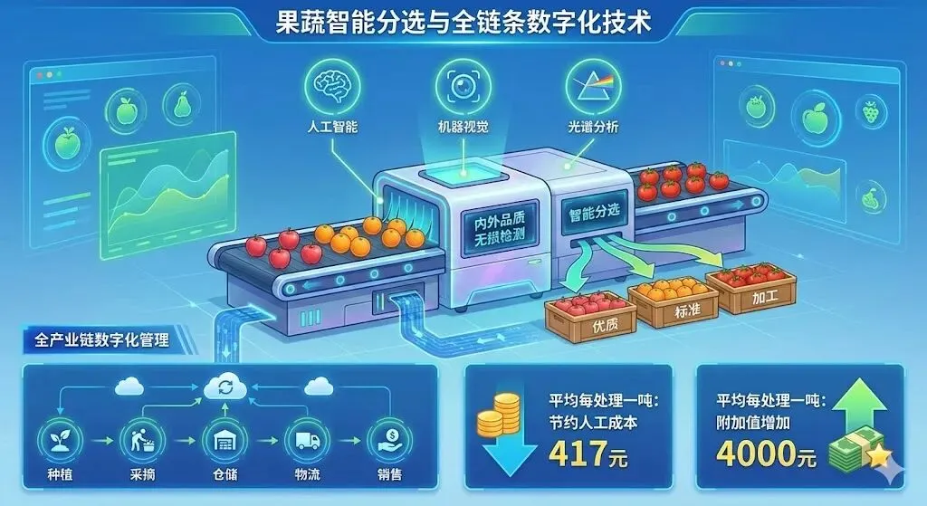 该技术构建水肥一体化智能决策系统,实现信息实时感知与远程自动调控。应用后灌溉用水量减少35~60%,化肥用量减少15~20%,人工投入下降70%以上,平均单产提升20%。 该技术构建了以全基因组遗传调控网络为基础的智能设计育种体系,实现育种从“经验驱动”向“智能设计”跨越。应用后可大幅缩短育种周期3~5年,整体效率提升4倍,分子检测成本降低80%。该技术集成人工智能、机器视觉、光谱分析等手段,实现果蔬内外品质无损检测与智能分选,并打通全产业链数字化管理。平均每处理一吨果蔬可节约人工成本417元、附加值增加4000元。该技术集成了从多维检测、协同预处理、超低温速冻到高值化加工的全链条智能加工技术,实现荔枝长期高保真保鲜。与传统冷冻相比,冻眠荔枝综合品质还原度达新鲜荔枝85%以上,并可节省人力成本30%。