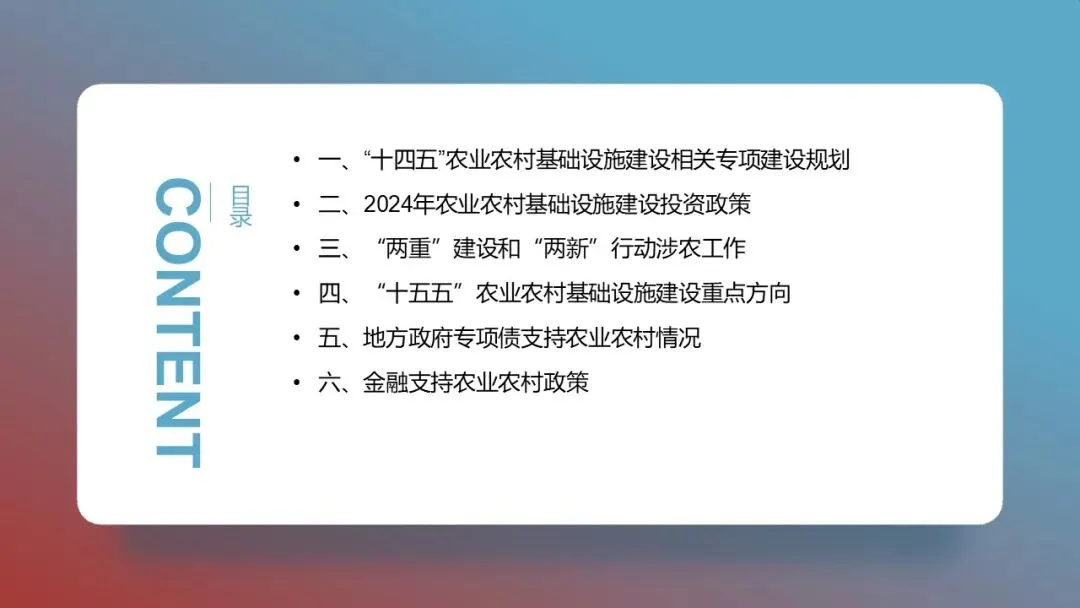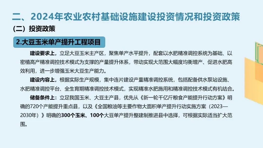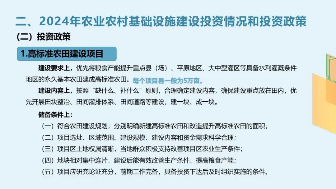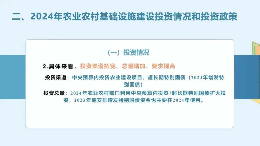 二、2024年农业农村基础设施建设投资政策