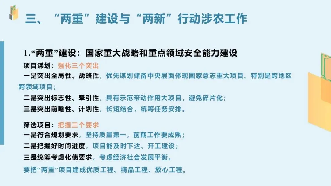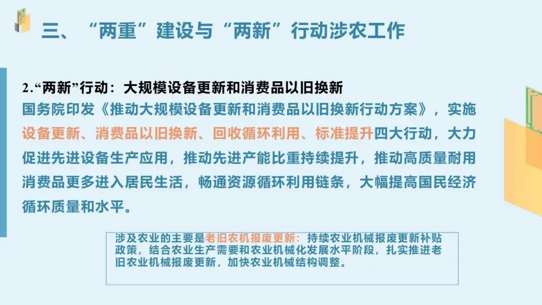 三、“两重”建设与“两新”行动涉农工作
