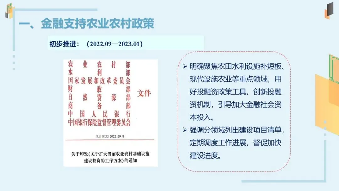 2023年:建立农业农村基础设施融资项目库,推动贷款贴息试点