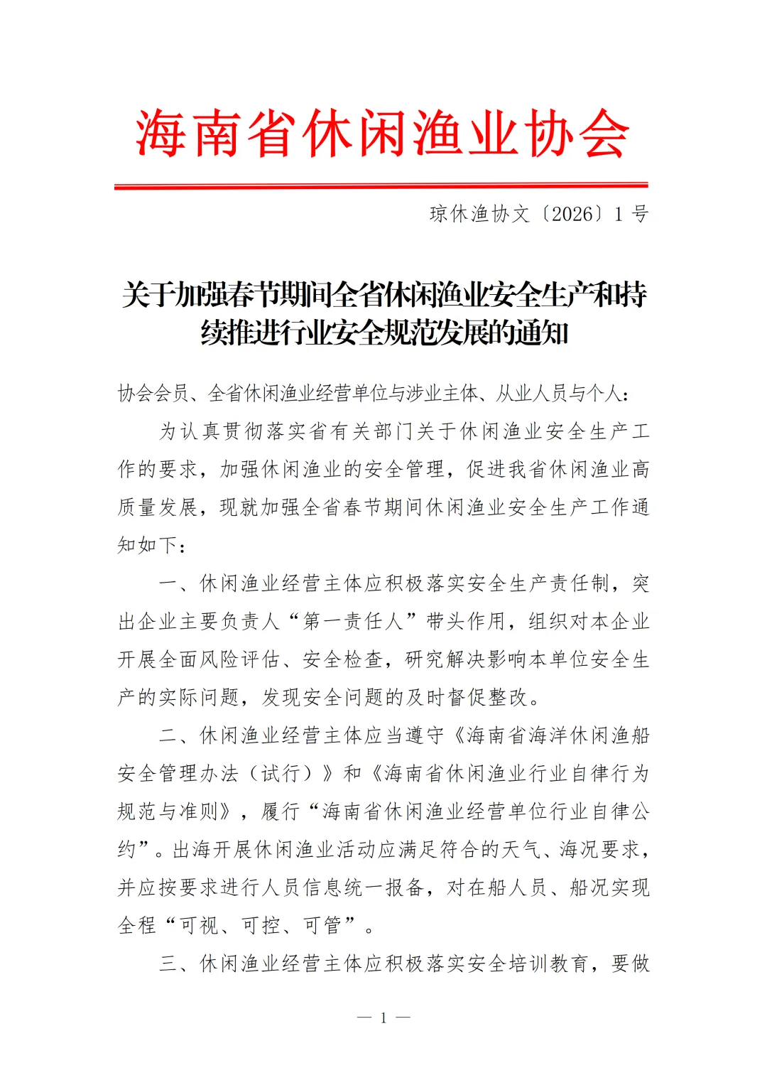 关于加强春节期间全省休闲渔业安全生产和持续推进行业安全规范发展的通知