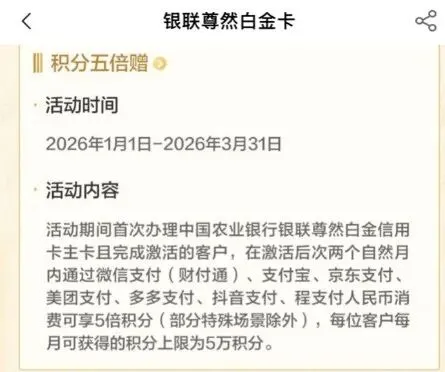 积分和里程:这是大亮点!配合6倍积分,兑换航司里程的比例能达到惊人的4.17:1,这比例在业内数一数二。不过要注意,农行里程每月限量,得掐着点(每月1日)去换。