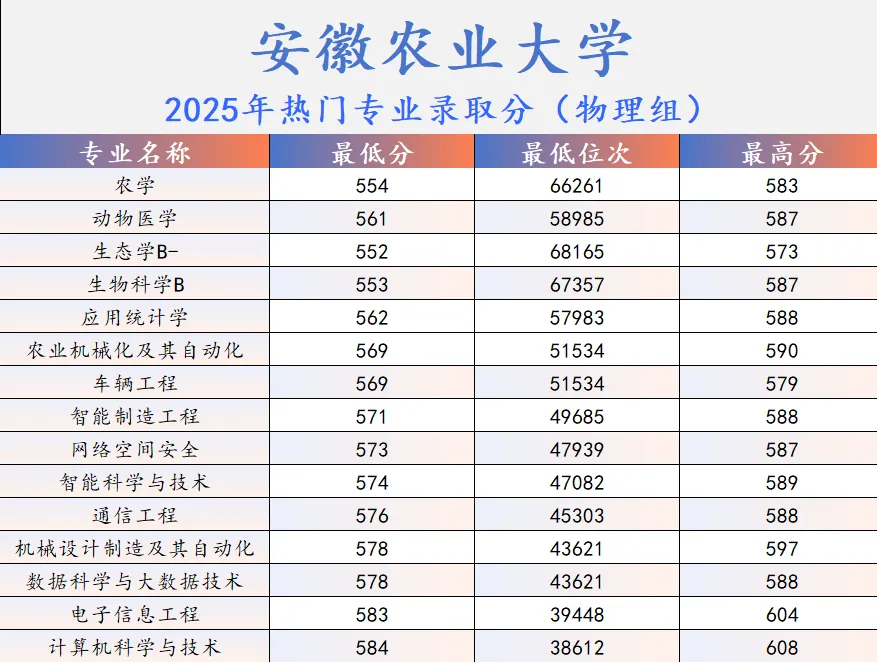 该校是安徽建校最早的高等学府,其历史可追溯至1928年在安庆创办的省立安徽大学,1946年更名为国立安徽大学,1949年迁至芜湖并沿用安徽大学之名。1954年学校调整为安徽师范学院和安徽农学院,后者迁往合肥办学,并于1995年更名为安徽农业大学。学校现有20个学院(部),全日制普通在校生29521人(含国际生213名),其中硕士、博士研究生6801人;在职教职工2300人,专任教师1446人。专任教师中副高以上职称占比62.2%,博士生、硕士生导师共1167人,另有校外博导88人、专硕导师1112人;拥有国家级人才51人、省级人才258人次。学科建设方面,现有ESI全球前1‰学科1个、前1%学科6个、国家重点(培育)学科1个、省部级重点学科19个、安徽省高峰学科4个及高峰培育学科4个。学位授权体系包括7个一级学科博士后流动站、11个一级学科博士点、27个一级学科硕士点、1个二级学科硕士点以及19个硕士专业学位类别。本科教育共设58个招生专业,其中国家级一流本科专业建设点17个,省级一流本科专业建设点17个,另有国家级特色专业5个、国家级专业综合改革试点专业2个。