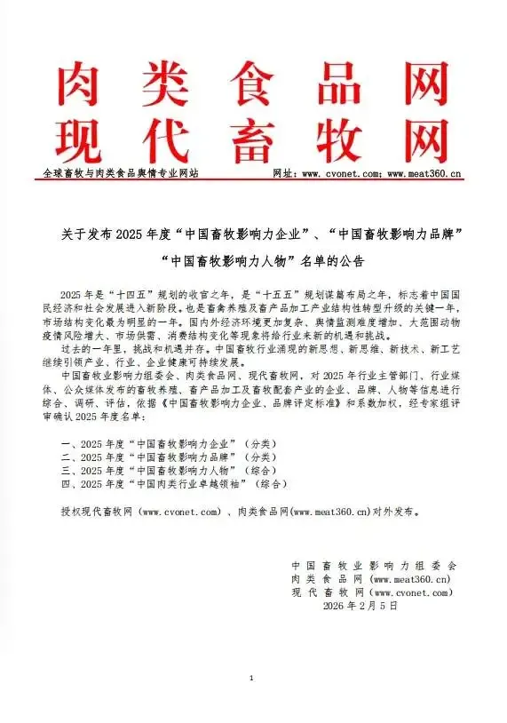 1、2025 年度“中国肉类影响力企业”