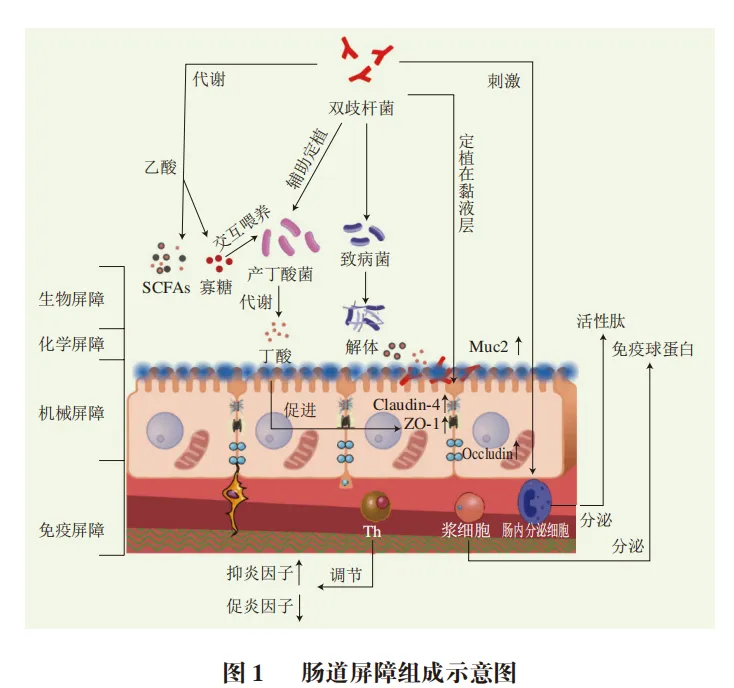 综上,双歧杆菌抑制有害菌的生长和提高有益菌丰度,进而完善肠道生物屏障是其缓解UC的主要原因之一。