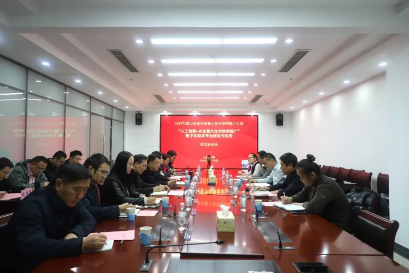 1月30日,由信息经济所主持的2025年度山东省农业重大技术协同推广计划“‘人工智能+农业重大技术协同推广’数字化助农平台研发与应用”项目启动会在济南召开。省农业农村厅科教处副处长杨超,省农业技术推广中心农村社会事业部部长郑勇,省农科院成果转化与推广处副处长苑东鹏,信息经济所党总支书记、所长刘涛,副所长封文杰、杨萍及项目组成员等20余人参会。