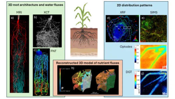 Fig.2.Disentangling the heterogeneity and complexity of rhizosphere with 2D and 3D imaging analytical tools.