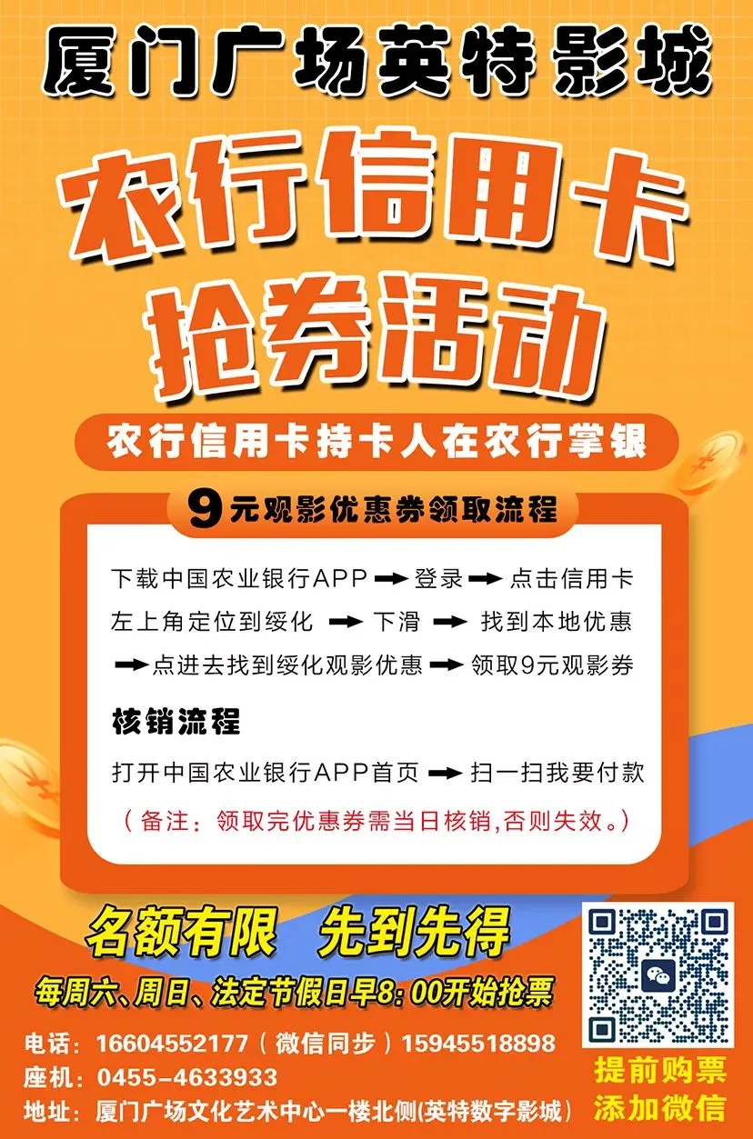 【英特影城观影活动】农行信用卡9元观影活动!!!