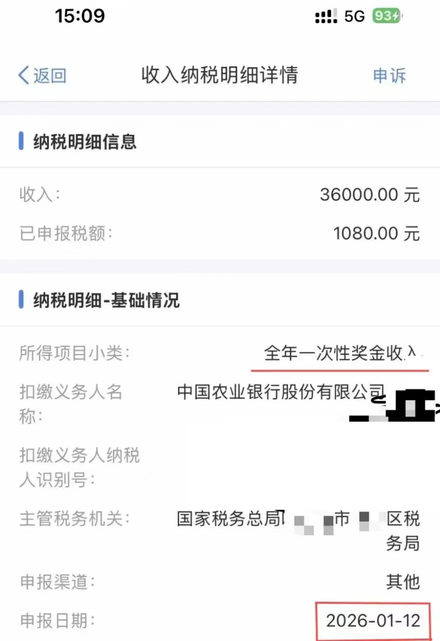 最近农行圈彻底热闹起来了,东北的农行小伙伴直接在网上晒出了2025年全年一次性奖金,看完真的太扎眼——发放日期是2026年1月12日,金额整整3.6W!
