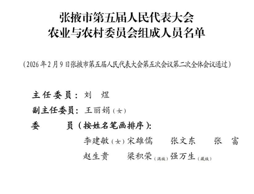 张掖市第五届人民代表大会农业与农村委员会组成人员名单