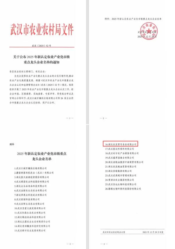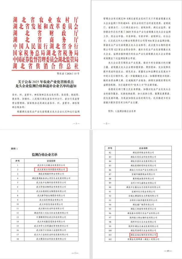 农发畜牧集团作为湖北农发集团在畜牧产业领域的核心实施主体,始终以服务全省畜牧业高质量发展、保障重要农产品稳定安全供给为根本任务。围绕“打造一个平台、建设五大支撑”的战略布局,持续推动各业务板块专业化运营、精细化管理和协同化发展,不断强化产业链韧性与附加值提升。此次三家子公司同时获得省市级龙头企业认定,是集团坚持产业深耕、强化主体培育取得的阶段性成果。下一步,集团将持续聚焦核心能力建设,深化产业链上下游协同,为助力湖北省畜牧产业高质量发展、全面推进乡村振兴贡献更大力量。